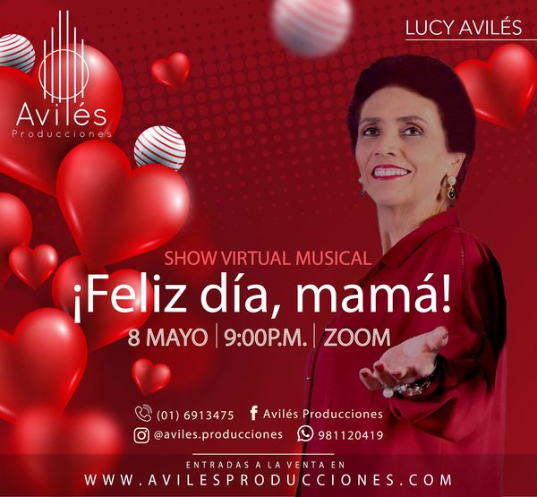 SHOW VIRTUAL DE MÚSICA CRIOLLA EN VIVO A CARGO DE LUCY AVILÉSÉ PARA CELEBRAR EL DÍA DE LA MADRE EN FAMILIA. DISFRUTAREMOS DE UNA NOCHE MÁGICA LLENA DE MÚSICA, HISTORIAS, ANÉCDOTAS , SORTEOS Y PREMIOS PARA LAS MAMÁS PRESENTES. ¡LOS ESPERAMOS!